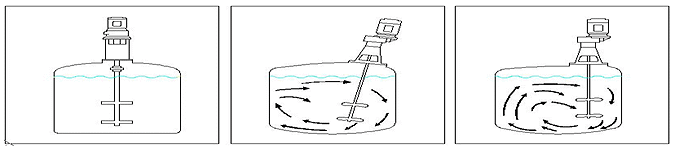 凡將攪拌器自攪拌槽之頂部插浸於槽內攪拌者謂之頂插法,可分為中心插浸(圖A)、偏心插浸(圖B)及偏心斜插(圖C)等三種。
