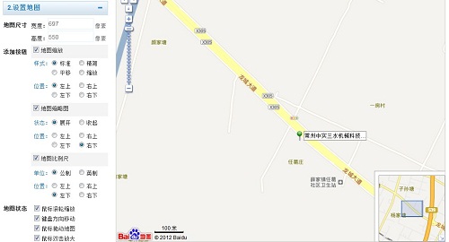 2.設(shè)置地圖,一般這里選用的默認(rèn)值寬度是697,高度是550,一般不用調(diào)整,按這個(gè)默認(rèn)值就可以了,但如果是自己網(wǎng)站頁面需要可以適當(dāng)?shù)恼{(diào)整下寬度和高度。